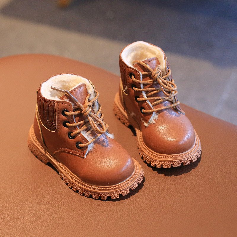 Home > Winter Plush Kids Martin Boots Fashion Leather Shoes for Toddlers Baby Boy Girl Warm Soft Antislip Casual Short Boots Kids Shoes