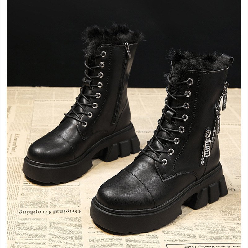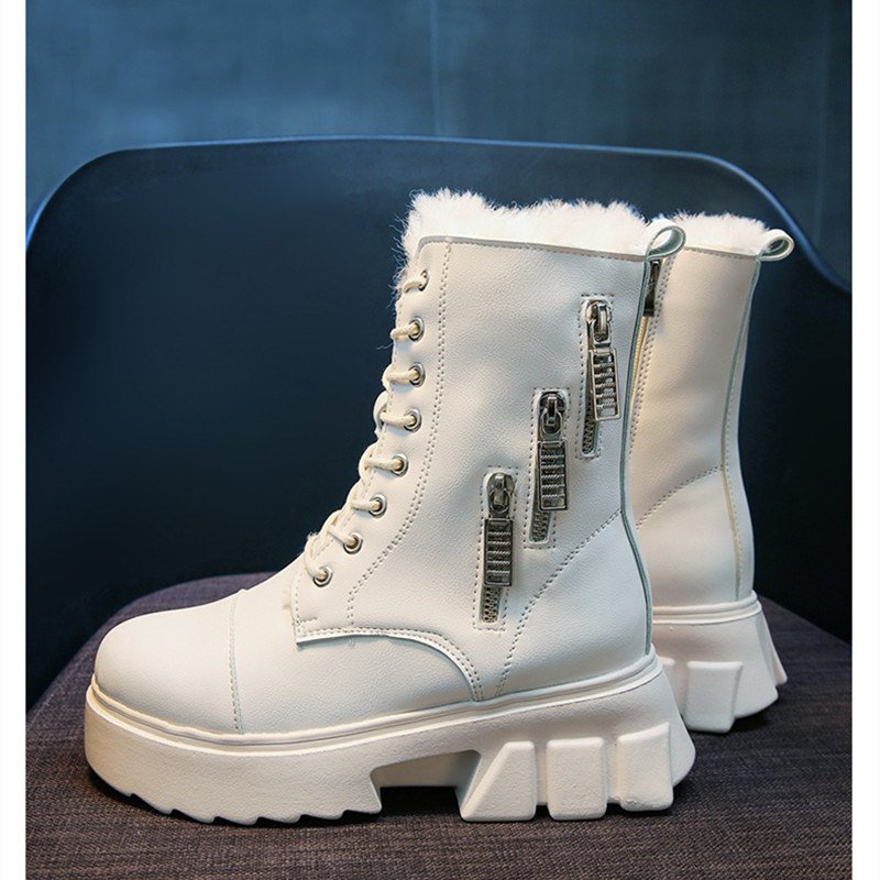 Women Snow Boots Beige Plush Warm Fur Causal Boots Shoes Sneakers Ankle Booties Platform Thick Sole Lace Up Winter Shoes998